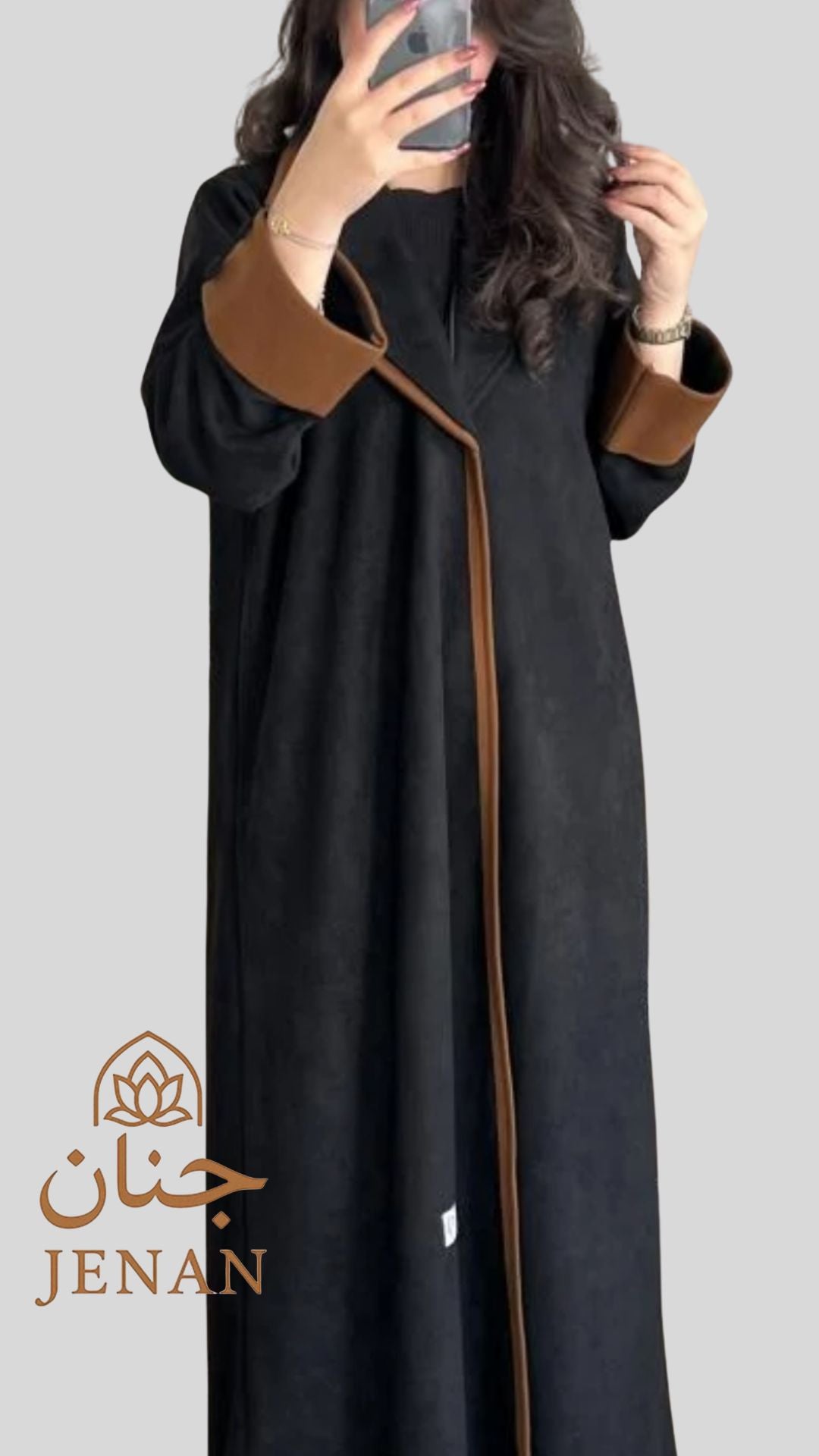 التفاصيل: مبروز بالاطراف بقماش شتوي بني اللون.